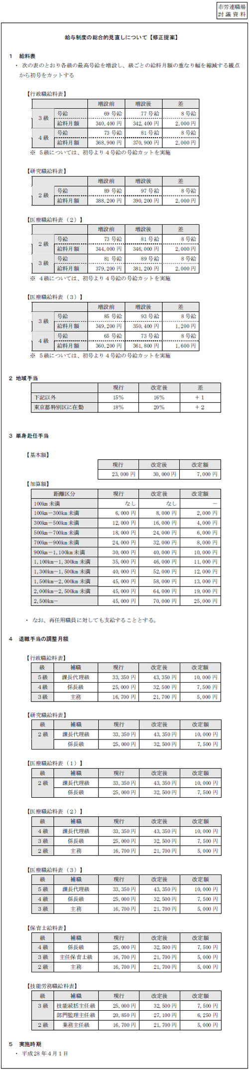 私どもとしては、大きなマイナス改定を行う中で、給料月額の減額措置に引き続きご協力をいただくためにも、皆様方からのご指摘については可能な限り考慮するといった観点から、何ができるかについて精力的に検討してきたところである。